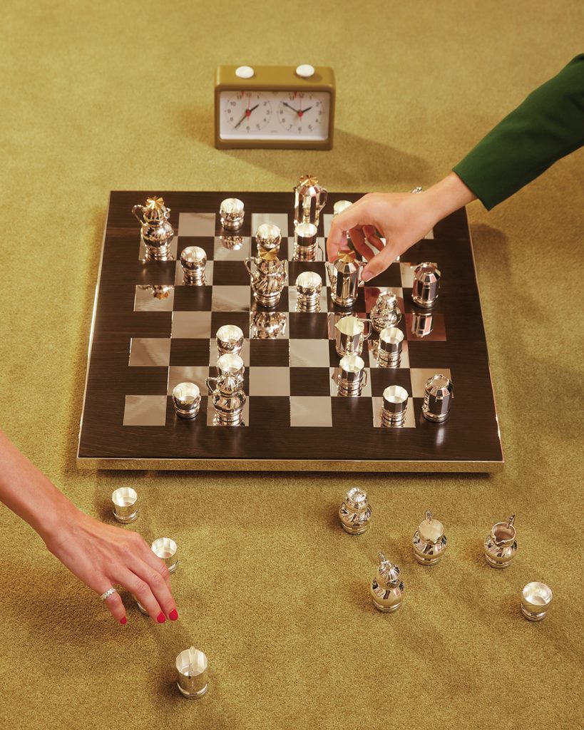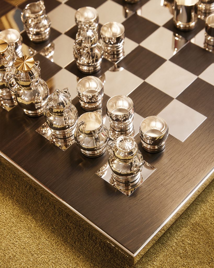 德國詩人歌德 :「西洋棋是人類智慧的試金石」!風靡西方百年的益智娛樂-西洋棋,融會大量的對弈技巧與沉著氣魄,更是當代商業軍事謀略的啟蒙之手;由Christofle推出的「Duel des Thés 茶.終極對決」,由銀匠大師們耗時100多的小時精心打磨,32件全鏡面掏光的純銀工藝品、珍稀針橡樹材而成的棋盤,為分秒必爭、變幻莫測的無限賽局重啟篇章。