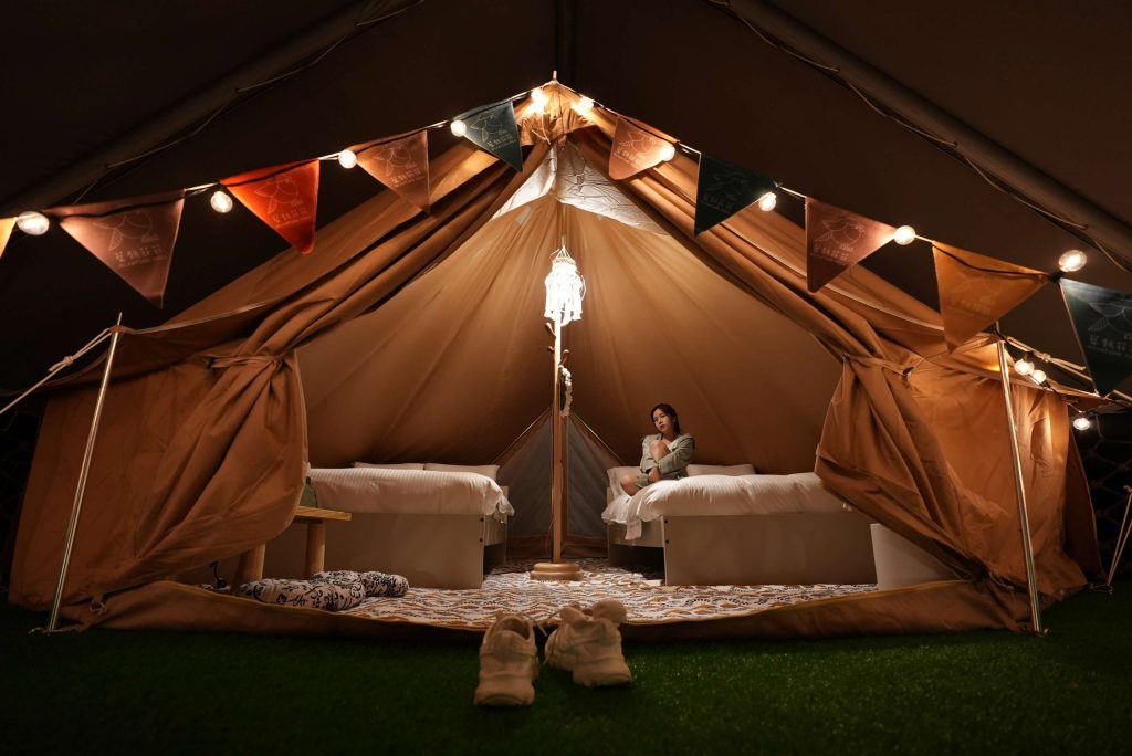 帳篷內部設有豪華舒眠床墊及冷暖空調,保證住客舒適的睡眠品質,並提供移動式除濕機,應對山區潮濕。帳外裝飾溫馨小燈泡,夜晚更顯浪漫氛圍。